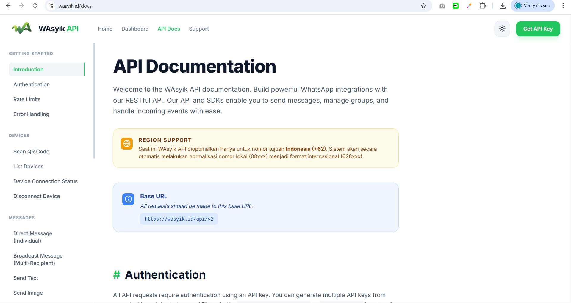 Dengan slogan "WAsyik - Solusi WhatsApp API & WA Gateway Terpercaya", platform ini fokus pada kemudahan penggunaan melalui dokumentasi API yang sederhana namun bertenaga, memungkinkan pengiriman pesan otomatis tanpa harus dilakukan secara manual.